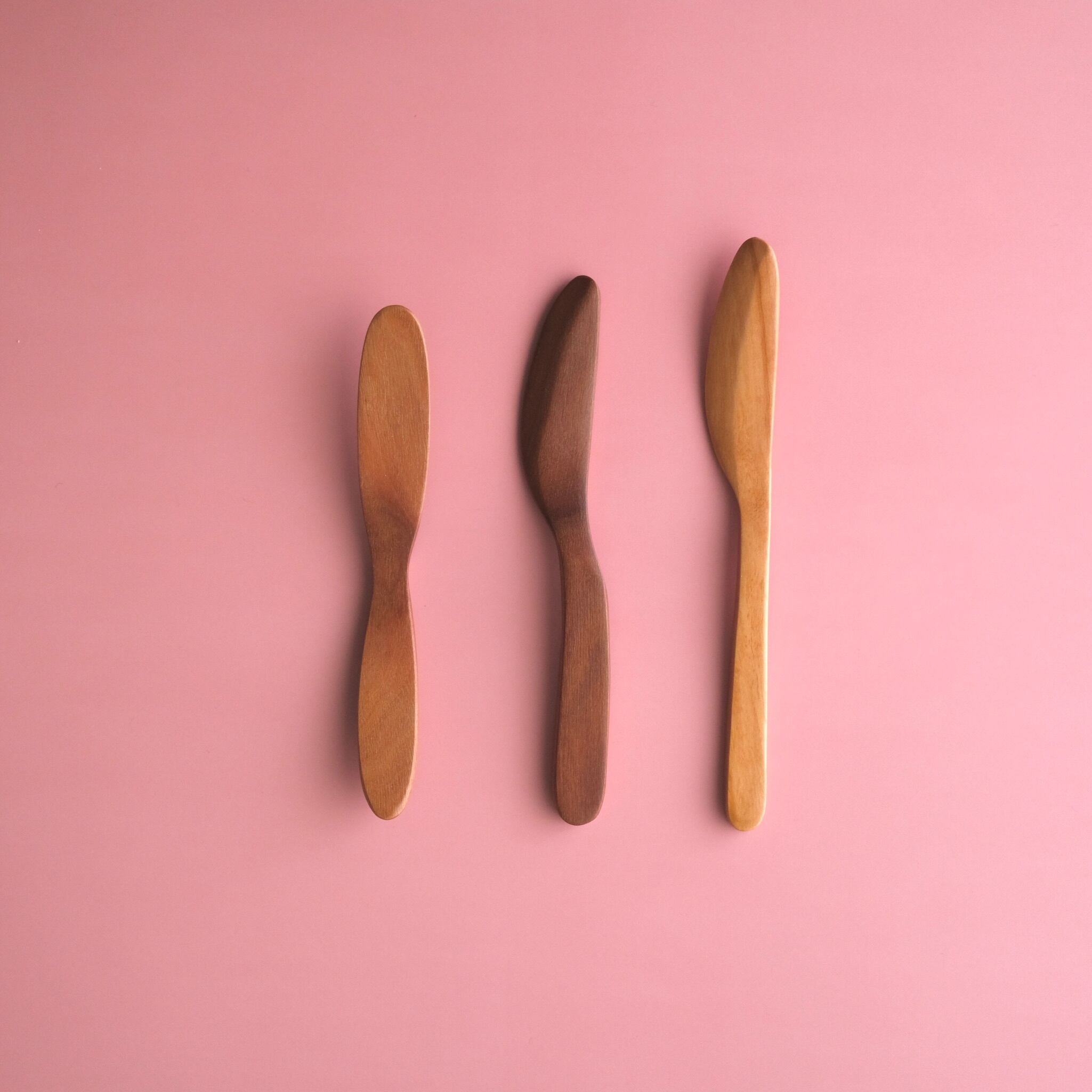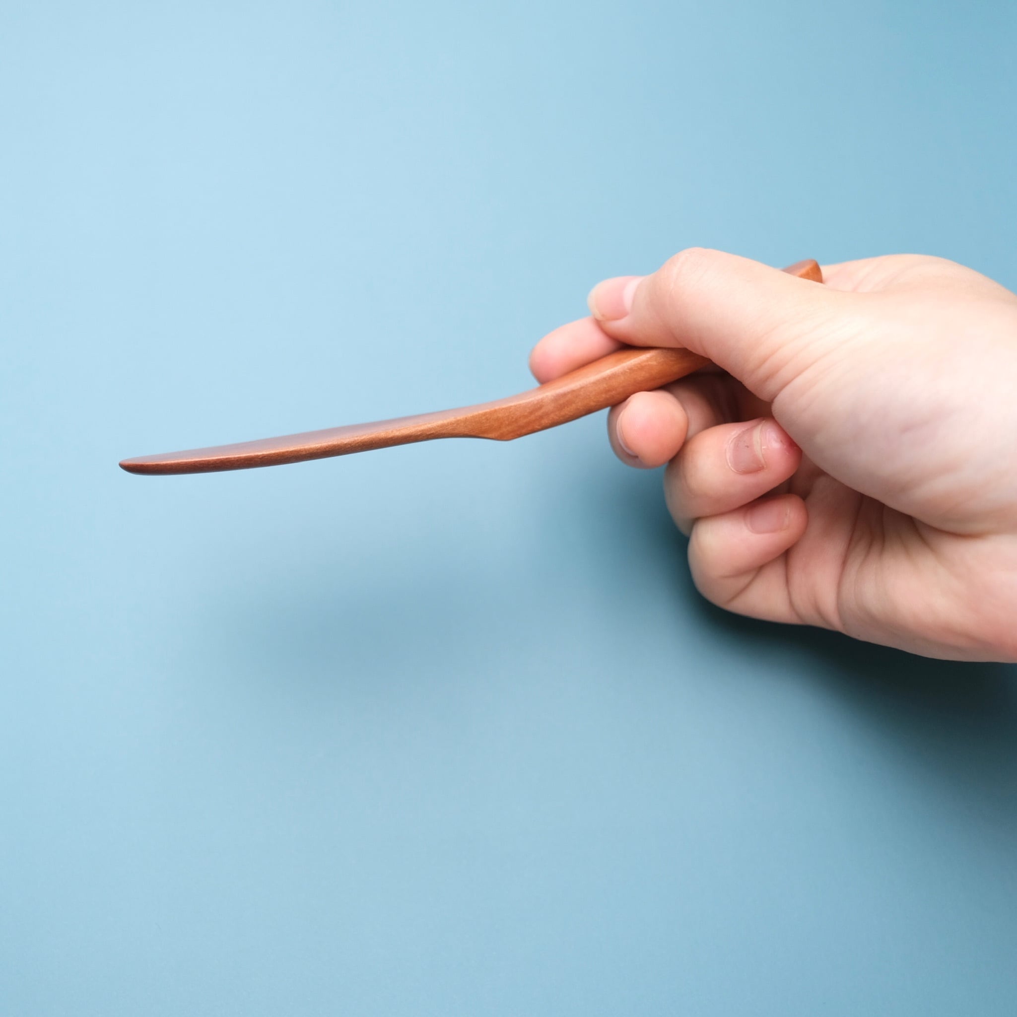 木目の美しい木のジャムヘラ。ジャムをすくう部分が絶妙な角度で薄く平らになっており、見た目よりもしっかりジャムを捉えてくれます。同じシリーズの木のバターナイフと一緒に揃えたくなります。