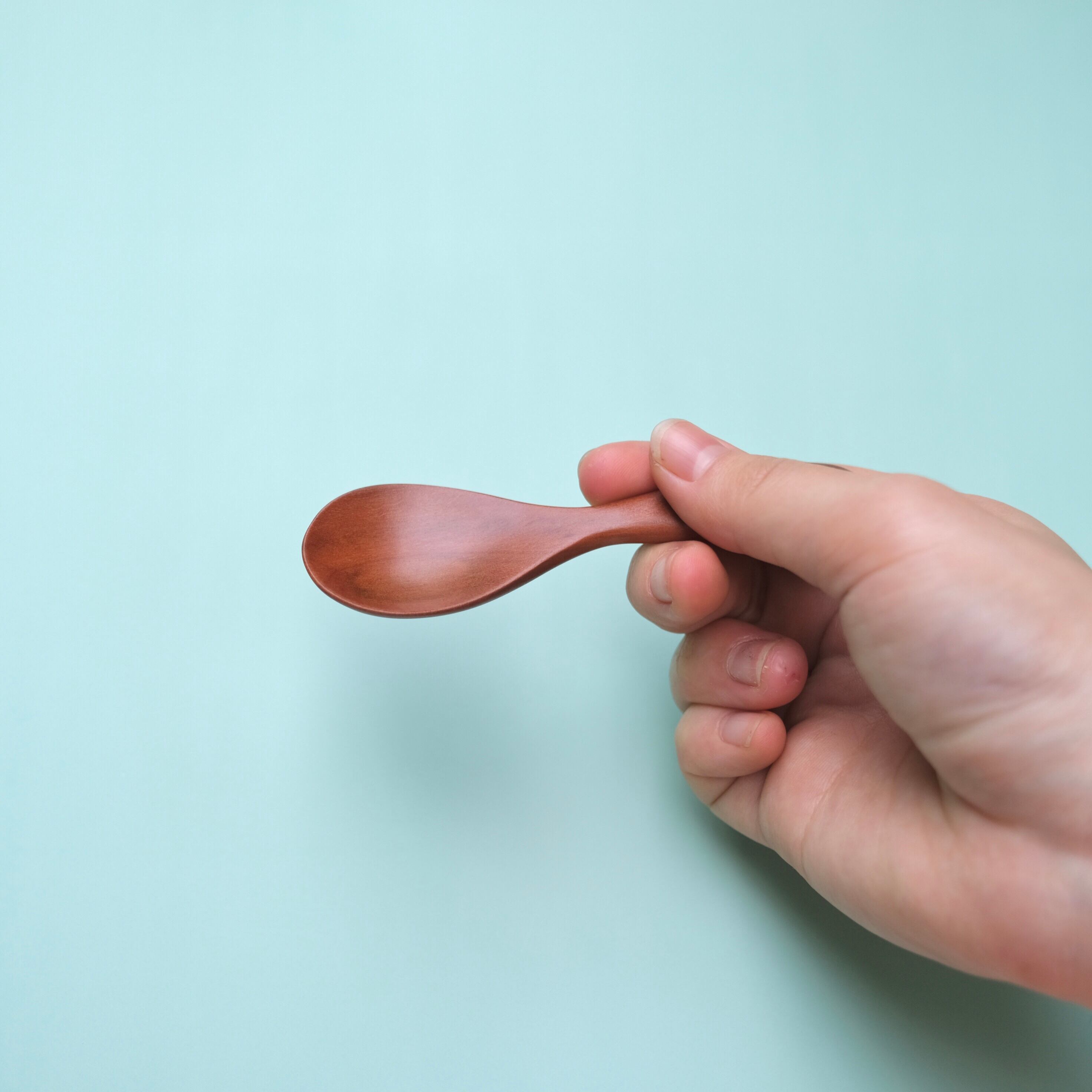 ミニサイズで幅広の木のスプーン。匙としても使いやすいです。
