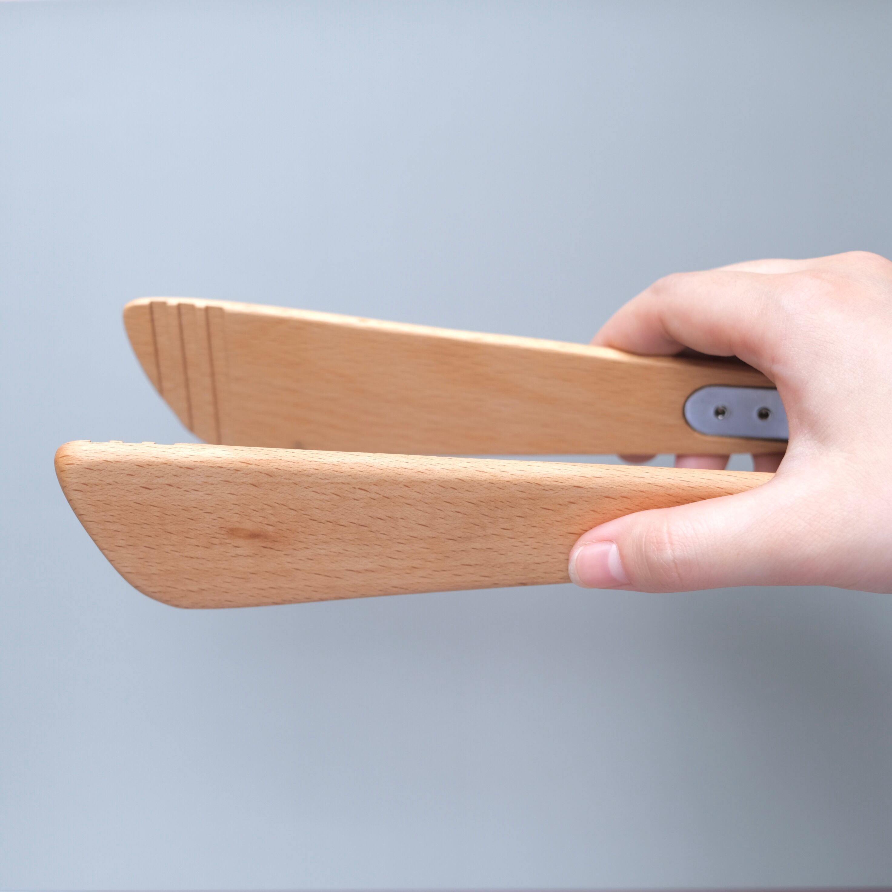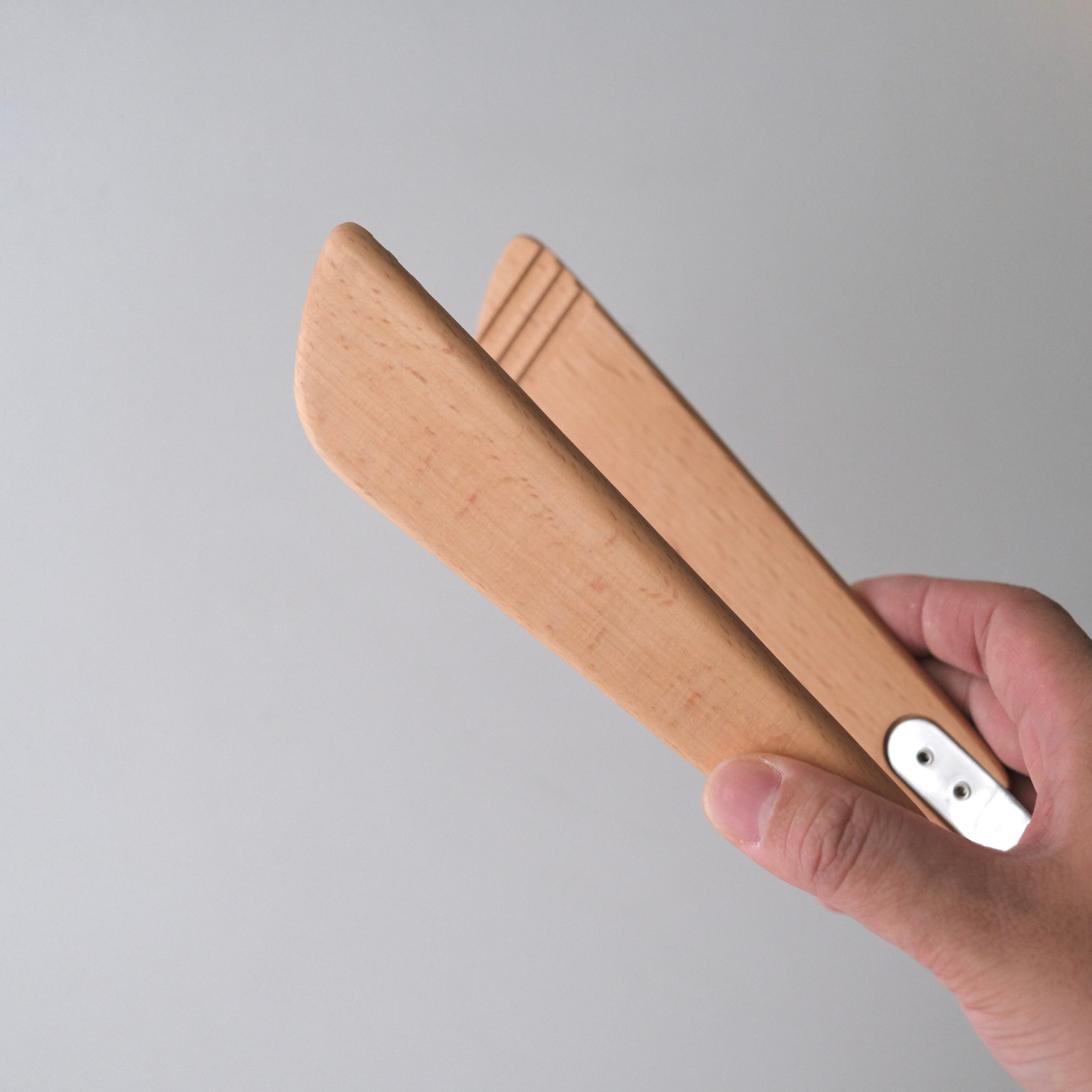 ビーチ材の天然木を使用したパントング。先端内側の凸凹で丸みのあるパンもしっかりキャッチできます。主にパンなどの塊状の食品をつかむのに最適に作られています。(サラダなどの料理のとりわけには、長めでスプーン状のくぼみがついたマルチトングがおすすめです)